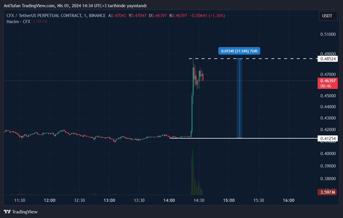 Gelen güzel haberler ile birlikte CFX isimli altcoin toplamda %17’lik ani bir yükseliş yaşadı. Piyasada sert düşüşlerin baskın olduğu bir günde CFX’in bu yükselişi dikkat çekti.