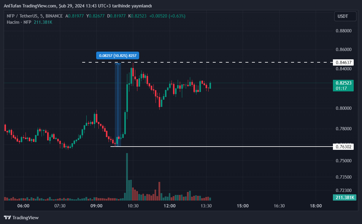 Kısa bir süre içerisinde %10’luk bir artış yaşamayı başaran NFP, halen zirve seviyelere yakın bir noktadan işlem görüyor.