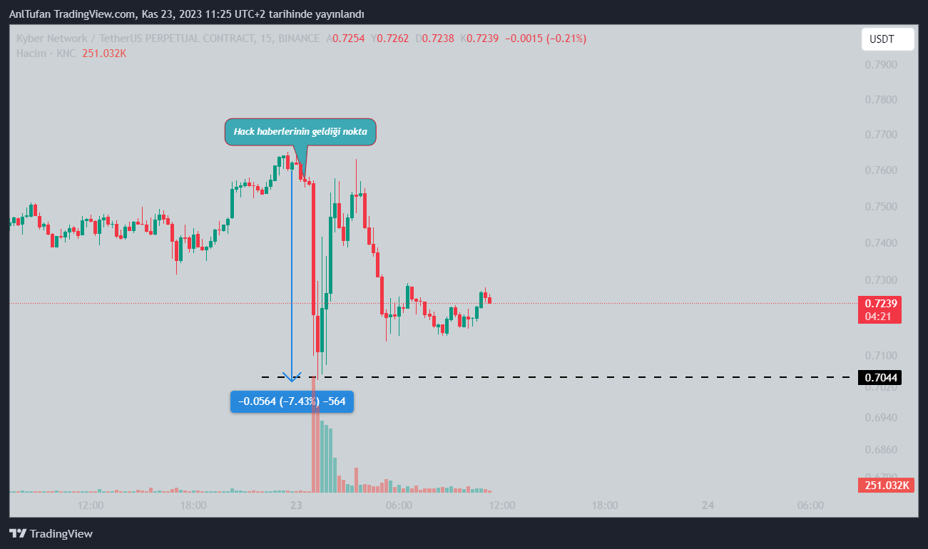 Bu gerçekleştirilen saldırı sonucunda KNC’nin %8’e yakın değer kaybettiği görüldü. KNC şuan itibariyle tam anlamıyla toparlanamamış durumda.
