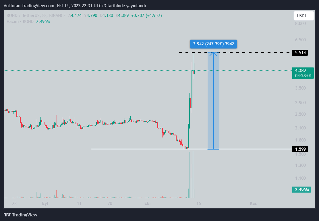 Bu gelişmeler sonrasında BOND isimli altcoin %250 oranında bir yükseliş yaşadı. BOND’un bu yükselişleri kripto para sektörünün gündemine oturmuş gibi gözüküyor.