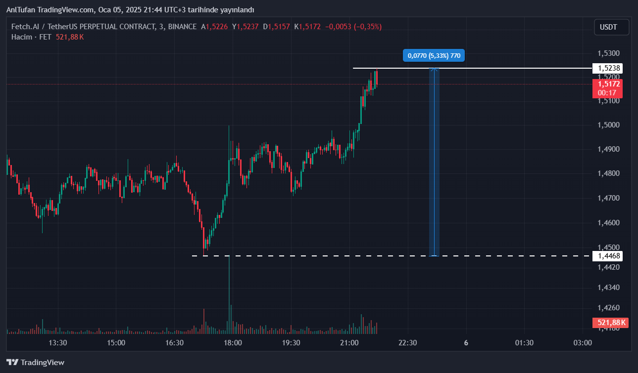 Popüler altcoin FET haberimizin yazıldığı esnada 1.51 dolar seviyelerinden işlem görüyor. FET son yakım duyuruları ile birlikte bugünkü düşüşlerini telafi etti ve sürecin ilerlemesiyle ortalama %5’lik bir artış gerçekleştirdi.