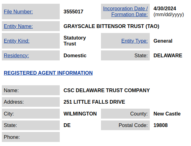 TAO fiyatını manipüle etmek isteyen bazı kişiler yukarıdaki görseli paylaşarak Grayscale’in harekete geçtiğini savunsa da, Delaware üzerinde herhangi bir kişi de bir Trust dosyası oluşturabiliyor.