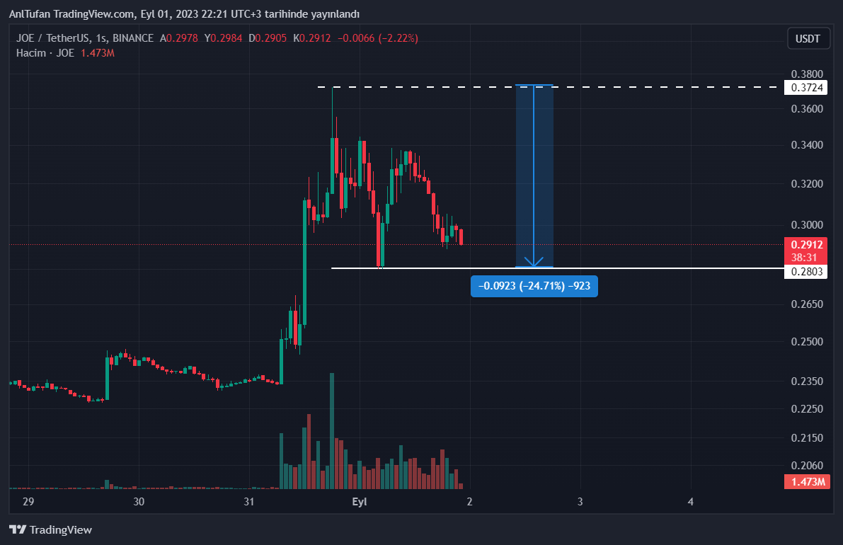 İşlem hacmine göre dünyanın en büyük kripto para borsası Binance‘de listelenmiş bir proje olan JOE isimli altcoin, dün itibariyle yüzde 50’den fazla bir yükseliş yaşadı. JOE’nin hareketleri, kripto para yatırımcılarının dikkatini çekiyor.