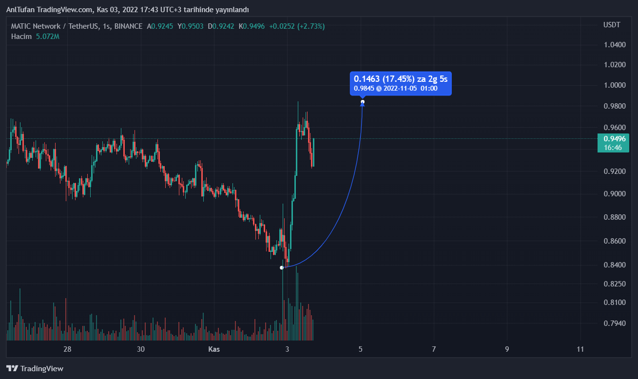 Gün içerisinde yüzde 18’e yakın yükseliş yaşadığı görülen MATIC, 0.9850 dolar seviyelerinden düşüş yaşamış durumda.