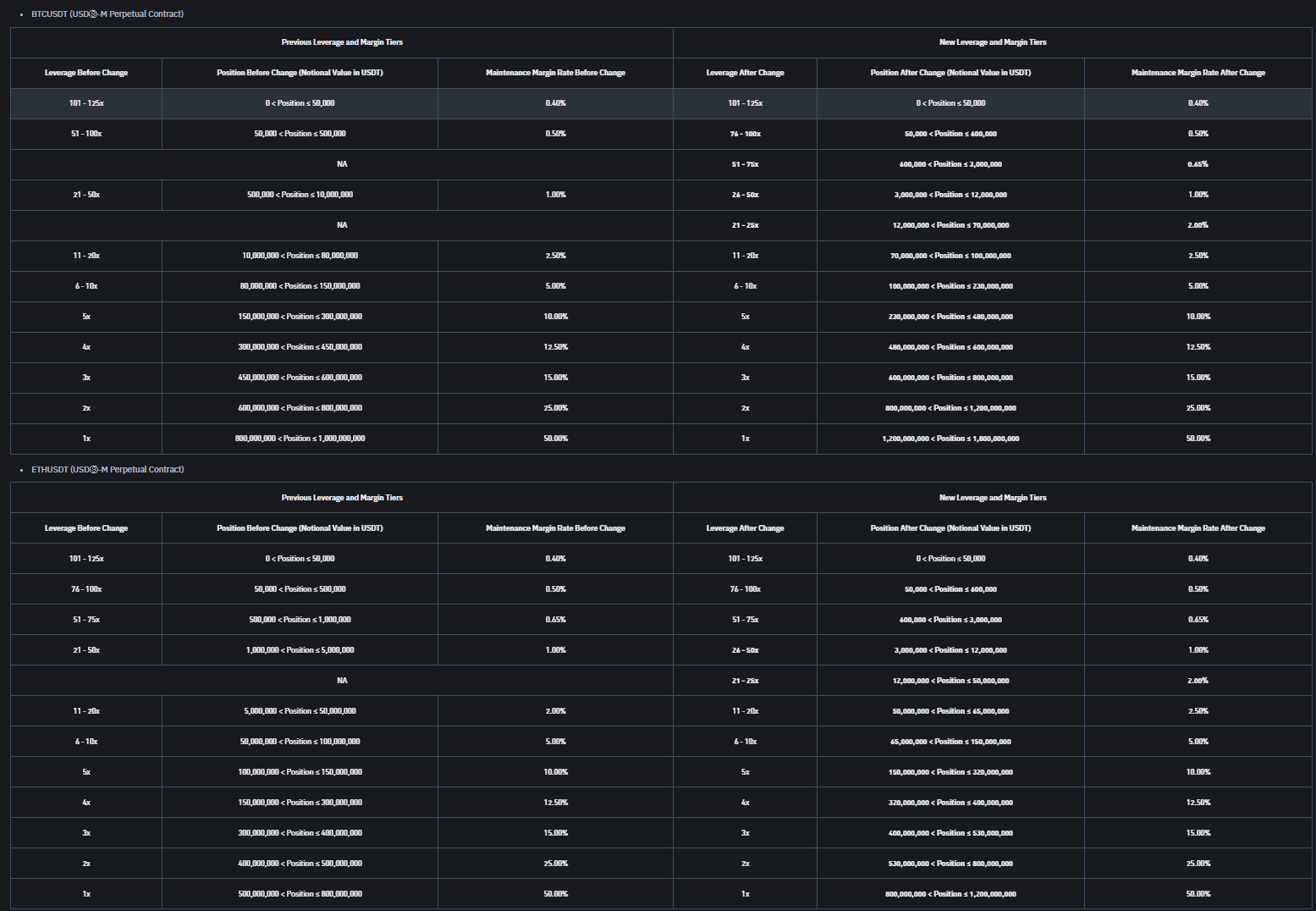 USDT Cinsinden Nominal Değer değerleme aralıklarını da değiştirmeye karar veren Binance, bu konu hakkında bazı detaylı tablolar hazırladı.