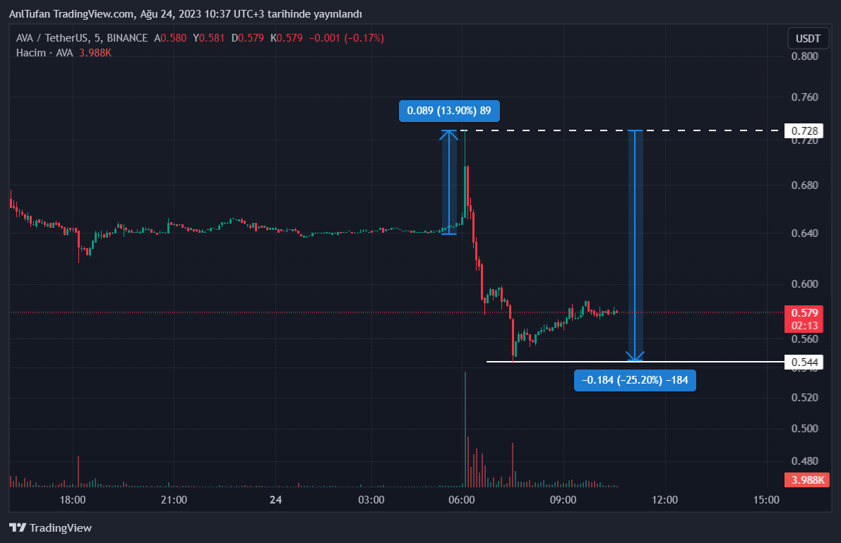 Bu gelen duyuru ile birlikte her ne kadar AVA isimli altcoin’de yüzde 13’lük ani bir yükseliş yaşansa da, ilerleyen saatlerde AVA’nın yüzde 25 oranında değer kaybederek çöküş yaşadığı gözlemlendi.
