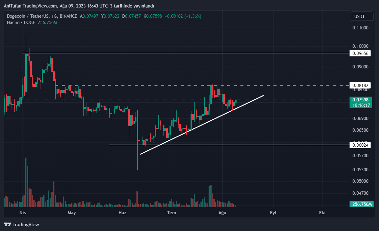 Son düşüşün ardından yükselen trendinden tepki alan DOGE, ilerleyen günlerde 0.08182 dolar direncini aşması halinde kısa bir süre içerisinde 0.09656 dolar direncine yükselebilir.