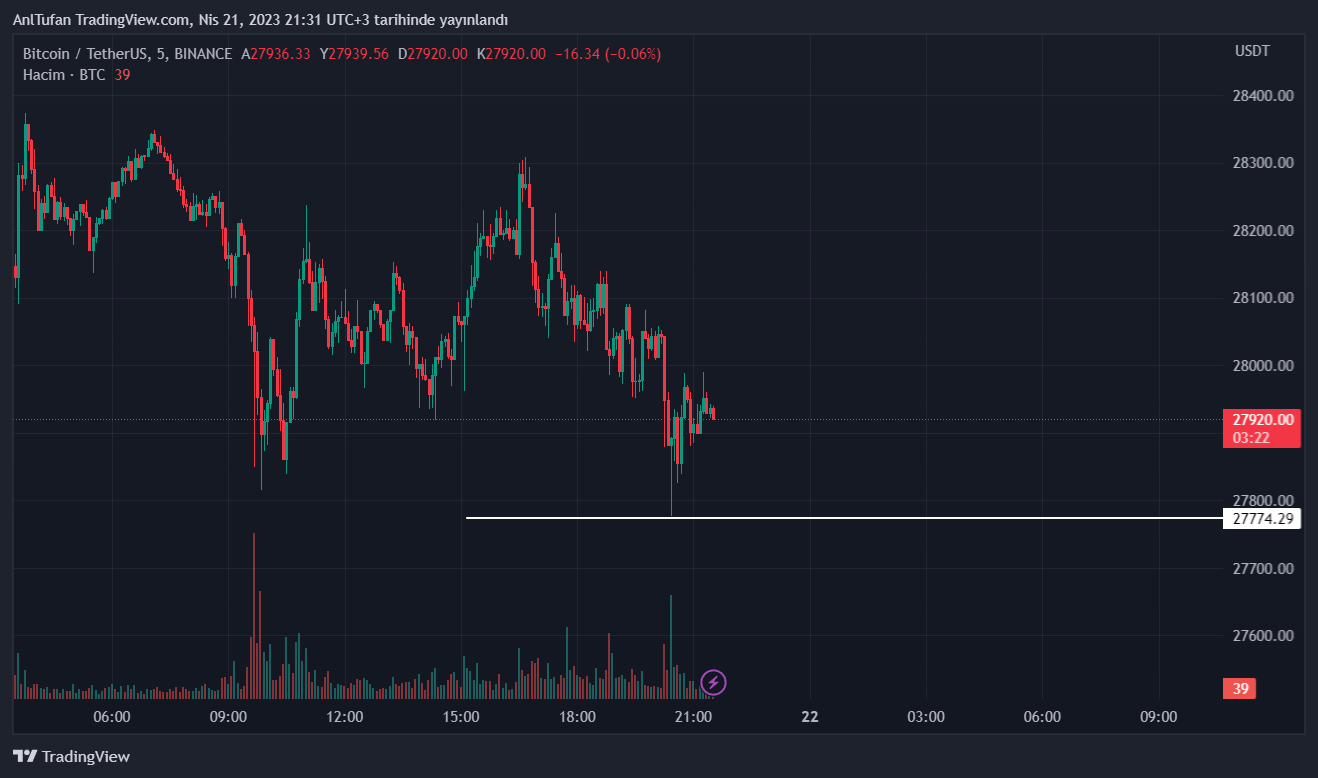 Haberimizin yazıldığı esnada lider kripto para birimi Bitcoin (BTC) 27.920 dolar seviyelerinden işlem görüyor. 28 bin doların da altına sarkan BTC, yatırımcıları endişelendirmekte.
