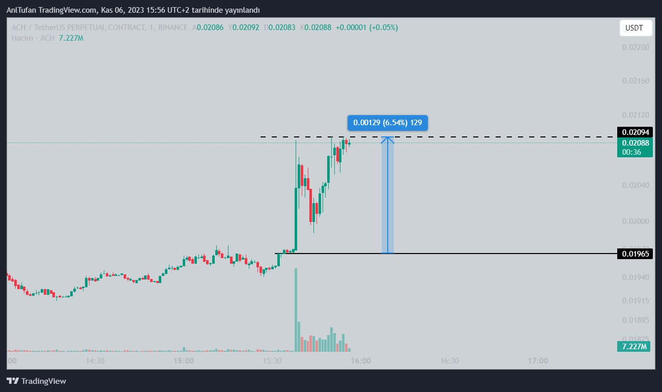 Alchemy Pay’in tweet’i sonrasında ise ACH isimli altcoin’de sert bir sıçrama yaşandı. Kısa sürede %6 oranında değer kazanan ACH, dikkatleri üzerine çekti.