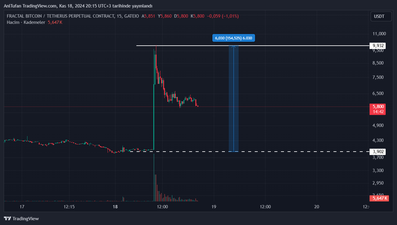 Bu gelişme ile birlikte daha önce Binance’de listelenmemiş bir kripto varlık olan FB, dev bir yükseliş yaşadı. Haberin ilk saatlerinde %150 oranında değer kazanan Fractal Bitcoin (FB), sürecin ilerlemesiyle birlikte bu yükselişlerin bir kısmını kaybetti.