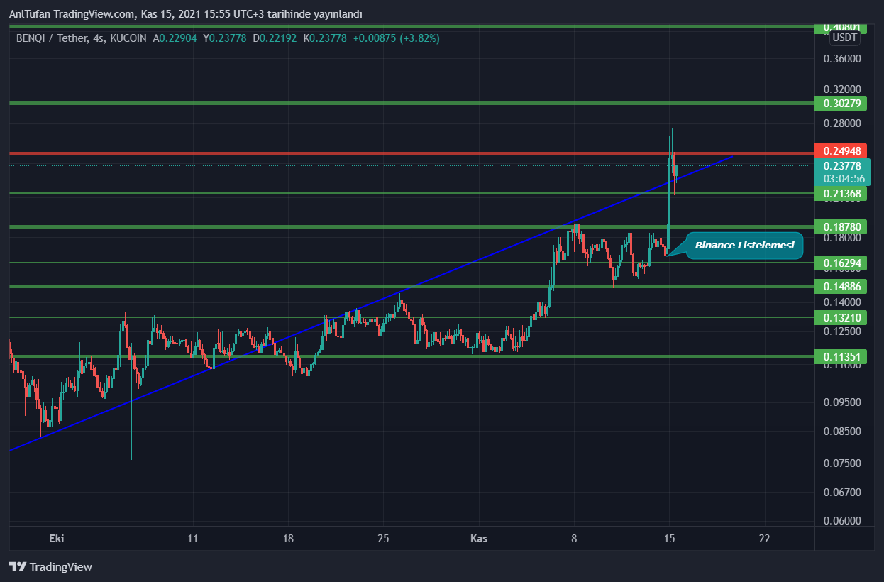 İlk listeleme haberi geldiğinde bu seviyenin üstüne çıksa da 4 saatlik mum kapatamamış olan coin, şimdi bu seviye üzerinde yapacağı mum kapanışlarının ardından fiyatın sert bir şekilde fırlaması bekleniyor.