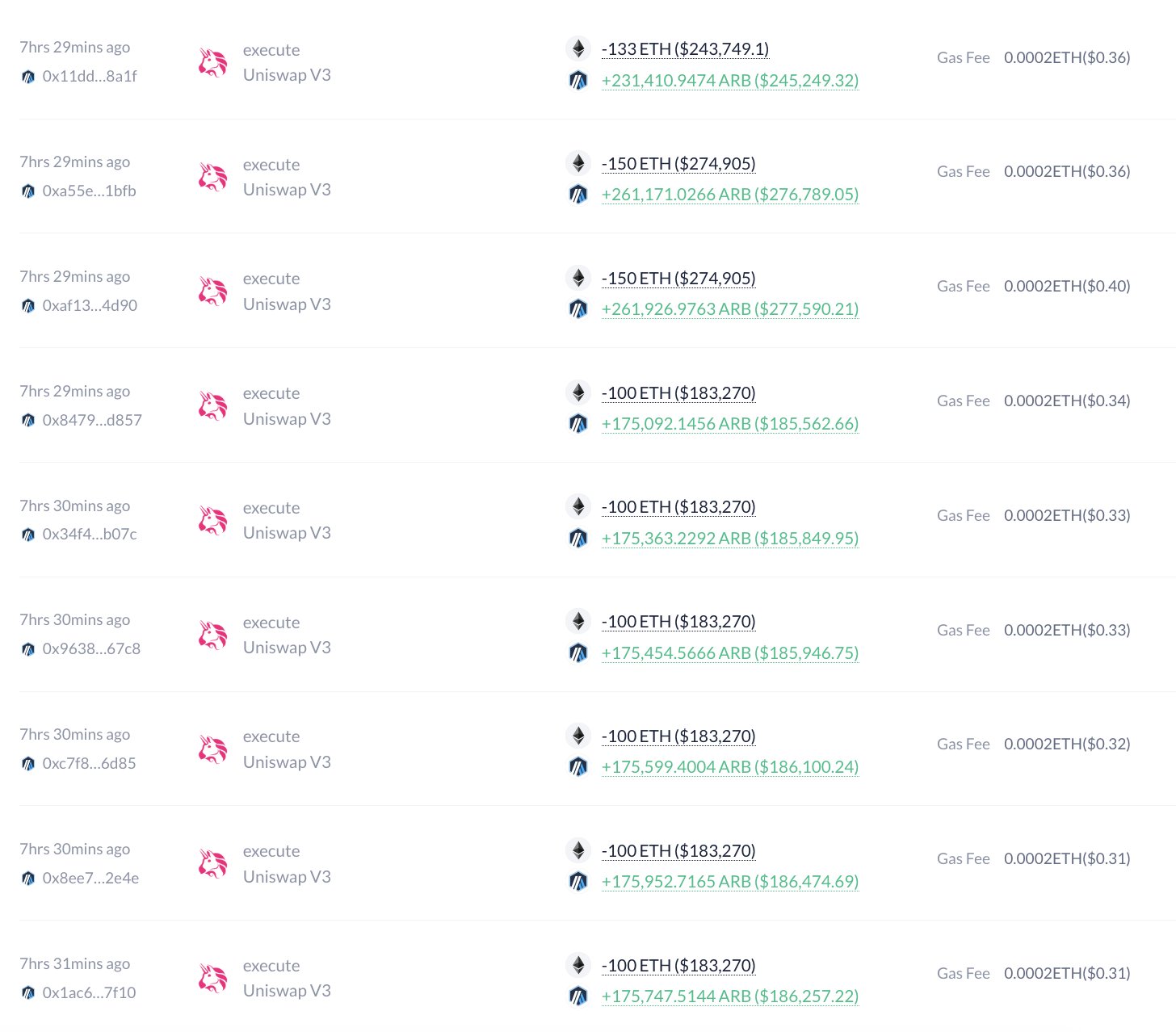 Son gelen bilgilere göre Arbitrum (ARB) isimli altcoin üzerindeki ilgi yeniden artmaya başlamış durumda. Bazı balinalar ETH satışı yapıp ARB satın alımı gerçekleştiriyor.