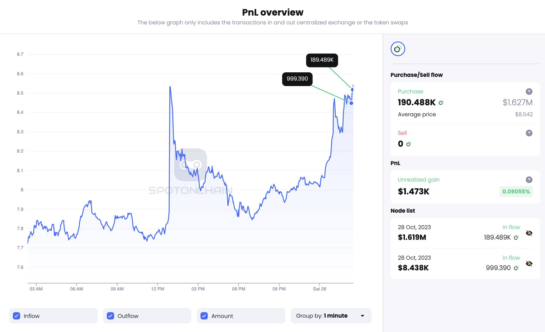 Son 24 saat içerisinde balina satın alımları ile %10’dan fazla değer kazanan UNFI, yatırımcıların dikkatini çekti. Başarılı bir veri sağlayıcısı olan Spot On-Chain, balinaların UNFI satın alımları hakkında şu sözleri aktardı: