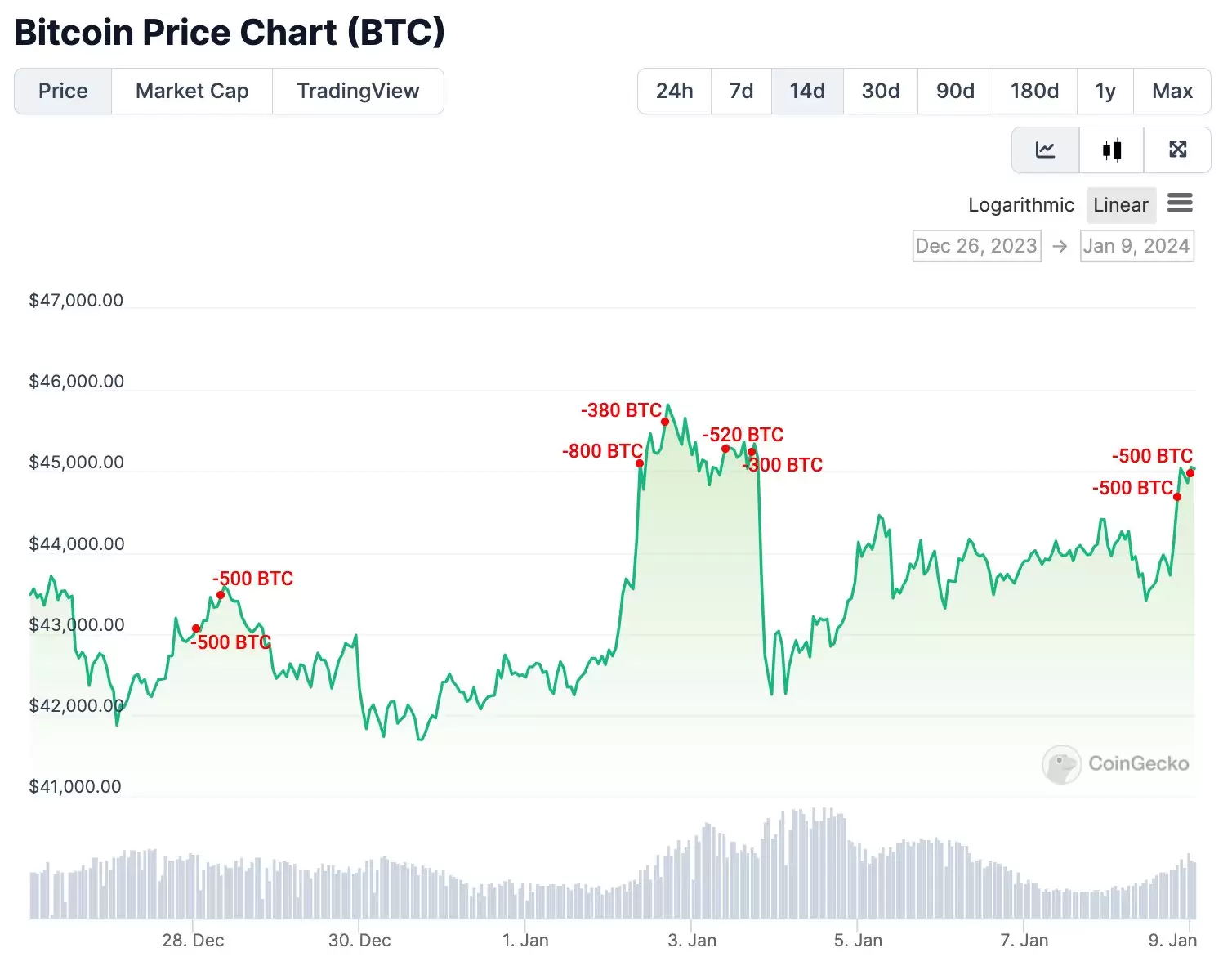Son dakikalarda Bitcoin her ne kadar 47.250 dolara kadar bir yükseliş gerçekleştirmiş olsa da, bir balina birkaç saat önce yükseliş trendini önemsemeden 45 bin dolar seviyelerinden BTC sattı.