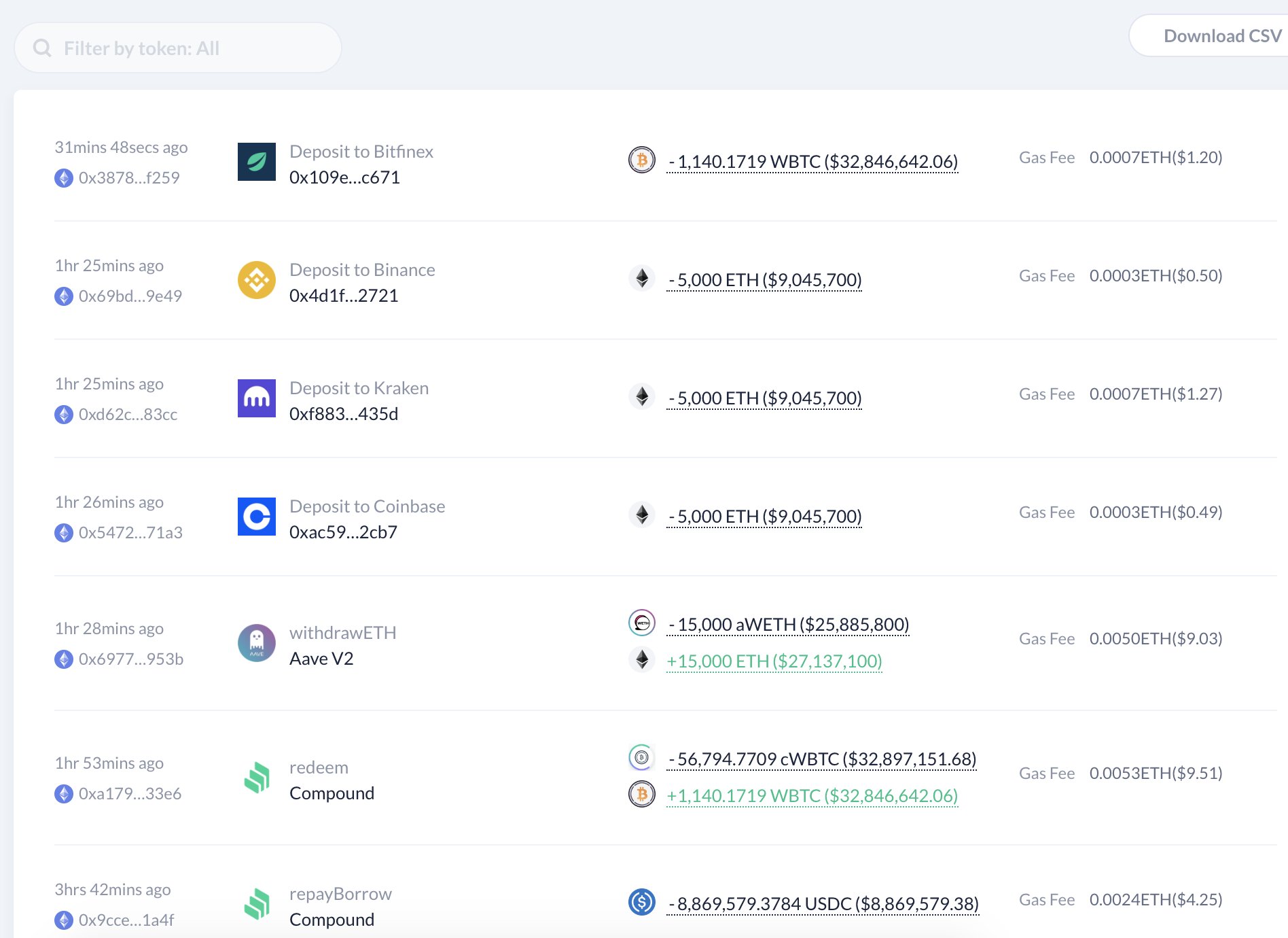 WBTC ve ETH’leri Kraken, Coinbase, Binance ve Bitfinex isimli 4 borsaya bölmüş gibi gözüken balina, parça parça satış yapmaya karar vermiş olabilir.