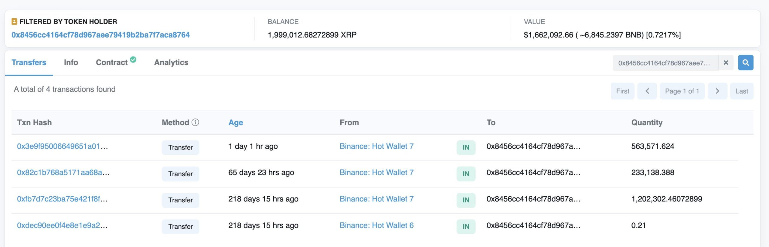 Başarılı bir veri sağlayıcısı olan Look On-Chain’in paylaştığı bilgilere göre bir balina Binance borsasından yine toplamda 563.571 adet XRP (462 bin dolar değerinde) satın aldı.