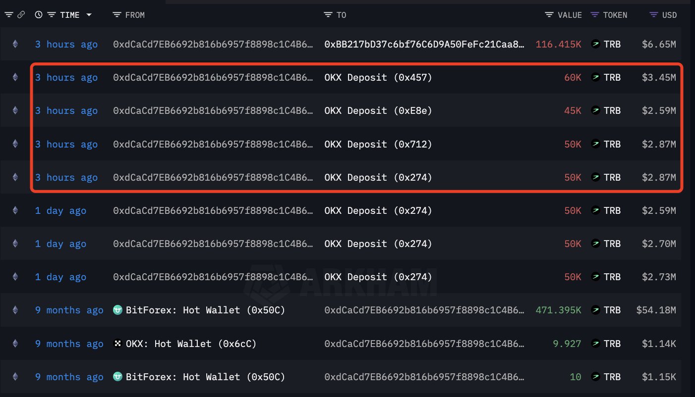 Başarılı bir zincir içi veri sağlayıcısı olan Look On-Chain, bu yükselişlerin ardından büyük TRB satışına hazırlanan bir balina keşfetti ve şu bilgileri aktardı: