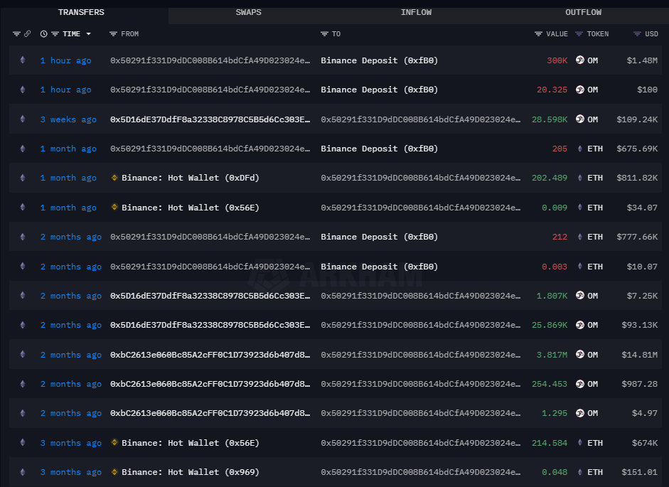 “1 saat önce, bir balina 0x502 Binance’e satış için 300k adet OM (1.48 milyon dolar değerinde) yatırdı ve bu token’lardan elde edilen kâr 1.47 milyon dolar oldu.