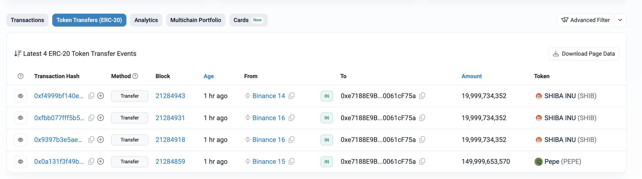 “Yeni oluşturulan bir kripto balina cüzdan çok kısa bir süre önce dev kripto para borsası Binance’den 60 milyar adet SHIB (1,52 milyon dolar değerinde) ve 150 milyar adet PEPE (2,94 milyon dolar değerinde) satın aldı.