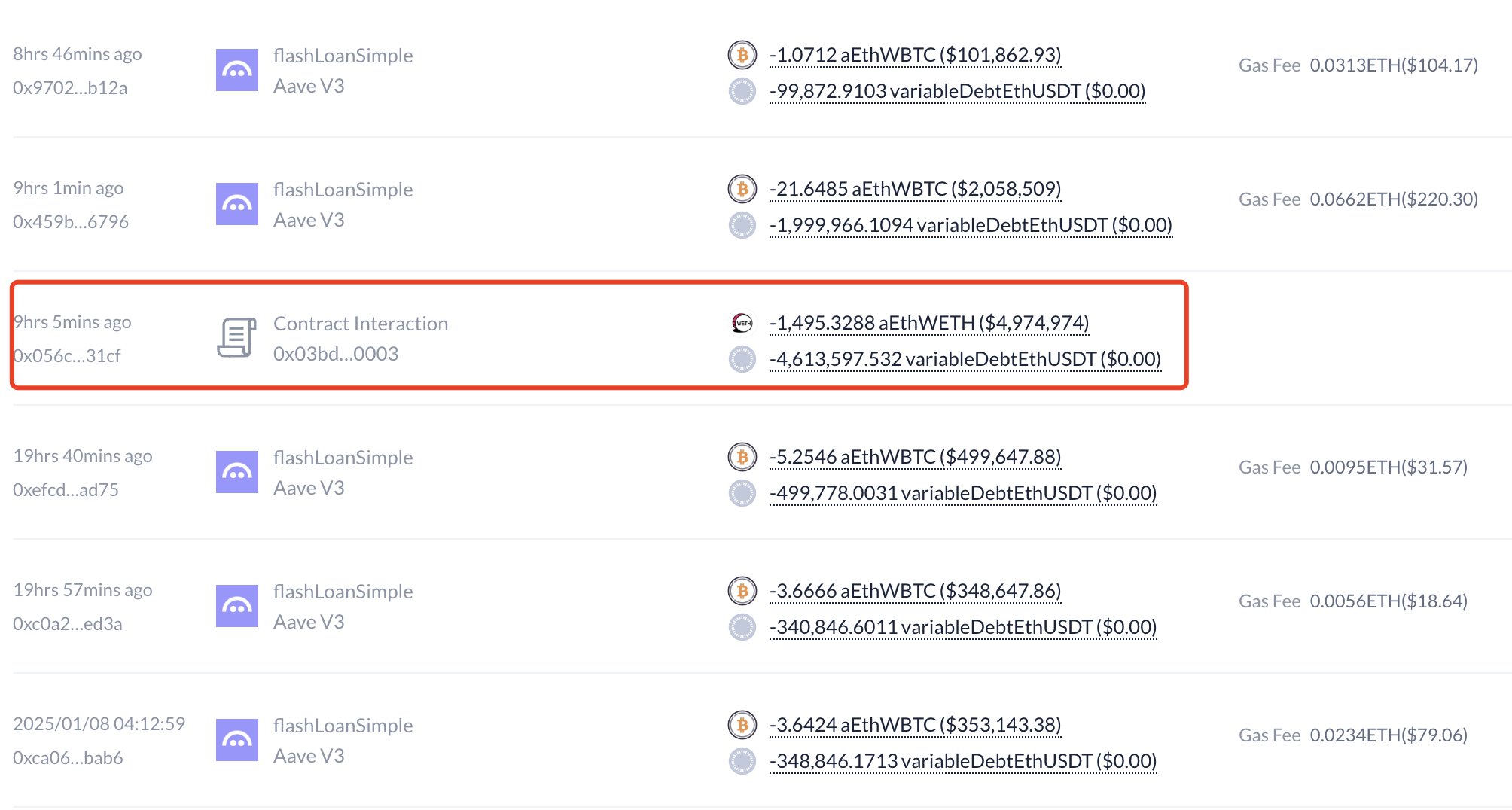 6 Aralık 2024’te 95,46 adet WBTC (9,25 milyon dolar değerinde) likide edildi.