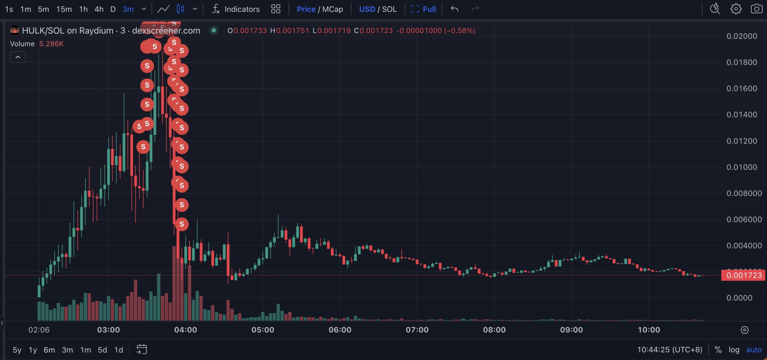 - Sürecin ilerlemesiyle HULK sert yükseliş yaşadı ve bu tüccar aldığı ürünlerin hepsini 5.760,7 adet SOL‘a (979 bin dolar değerinde) sattı. Balinanın bu satışı, fiyatın %85’ten fazla düşmesine neden oldu.