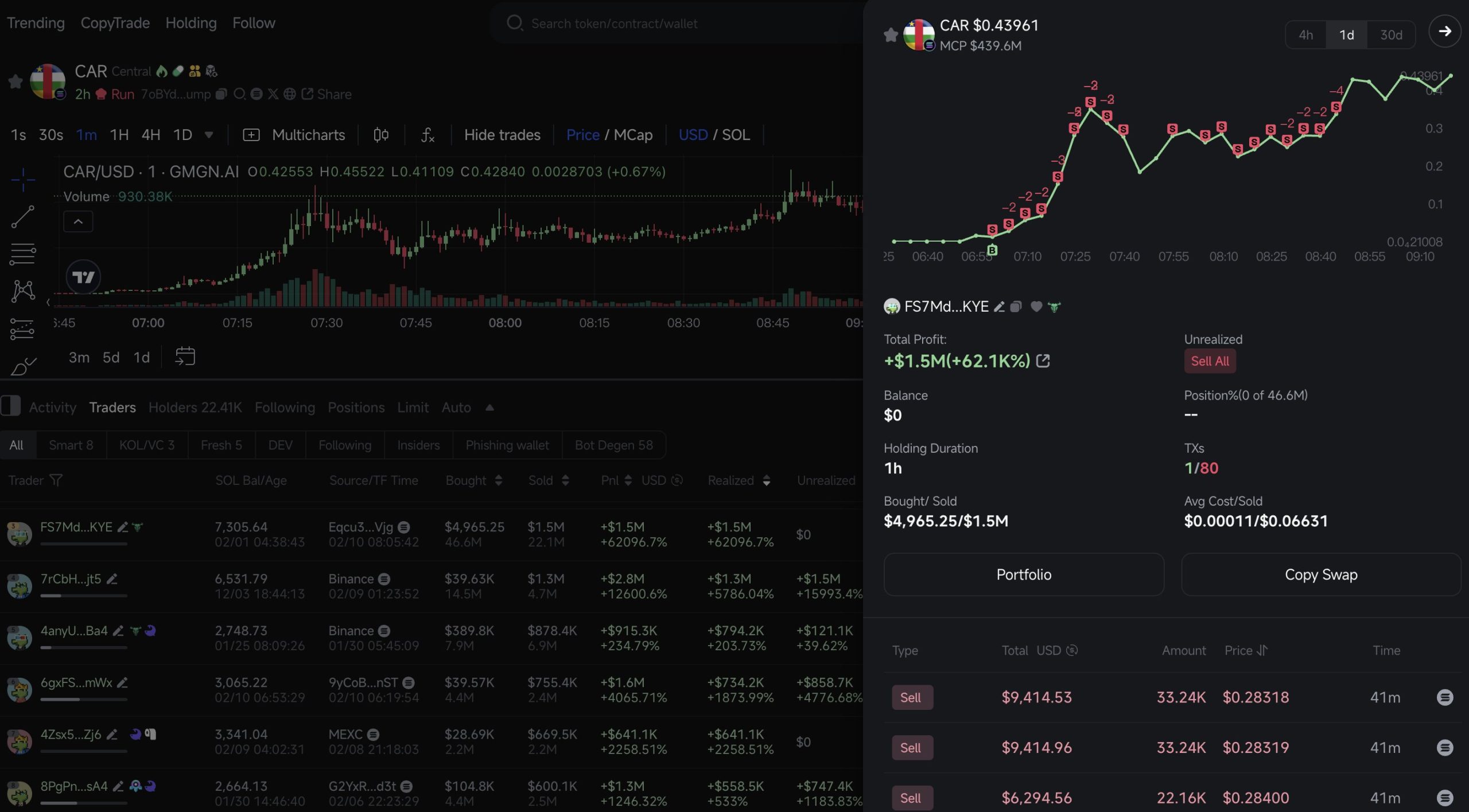 Tüccar ardından 22,65 milyon adet CAR’ı 8.395 adet SOL(1,67 milyon dolar değerinde) karşılığında sattı ve geriye 23,92 milyon adet CAR’ı (10,5 milyon dolar değerinde) kaldı.”