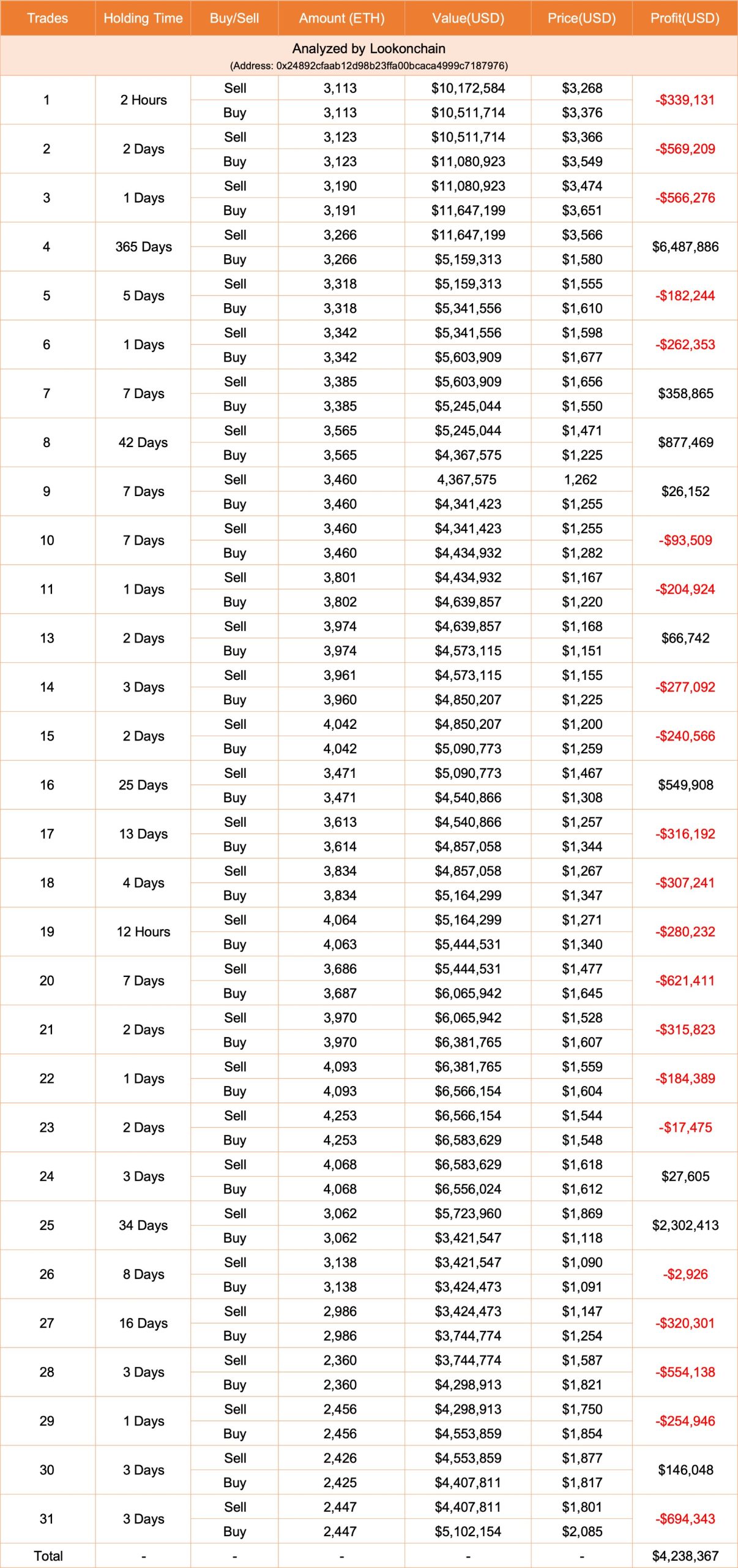 Bu kripto tüccarının tüm ETH alım satımlarını merak eden okurlarımız, aşağıdaki görsele göz atabilir: