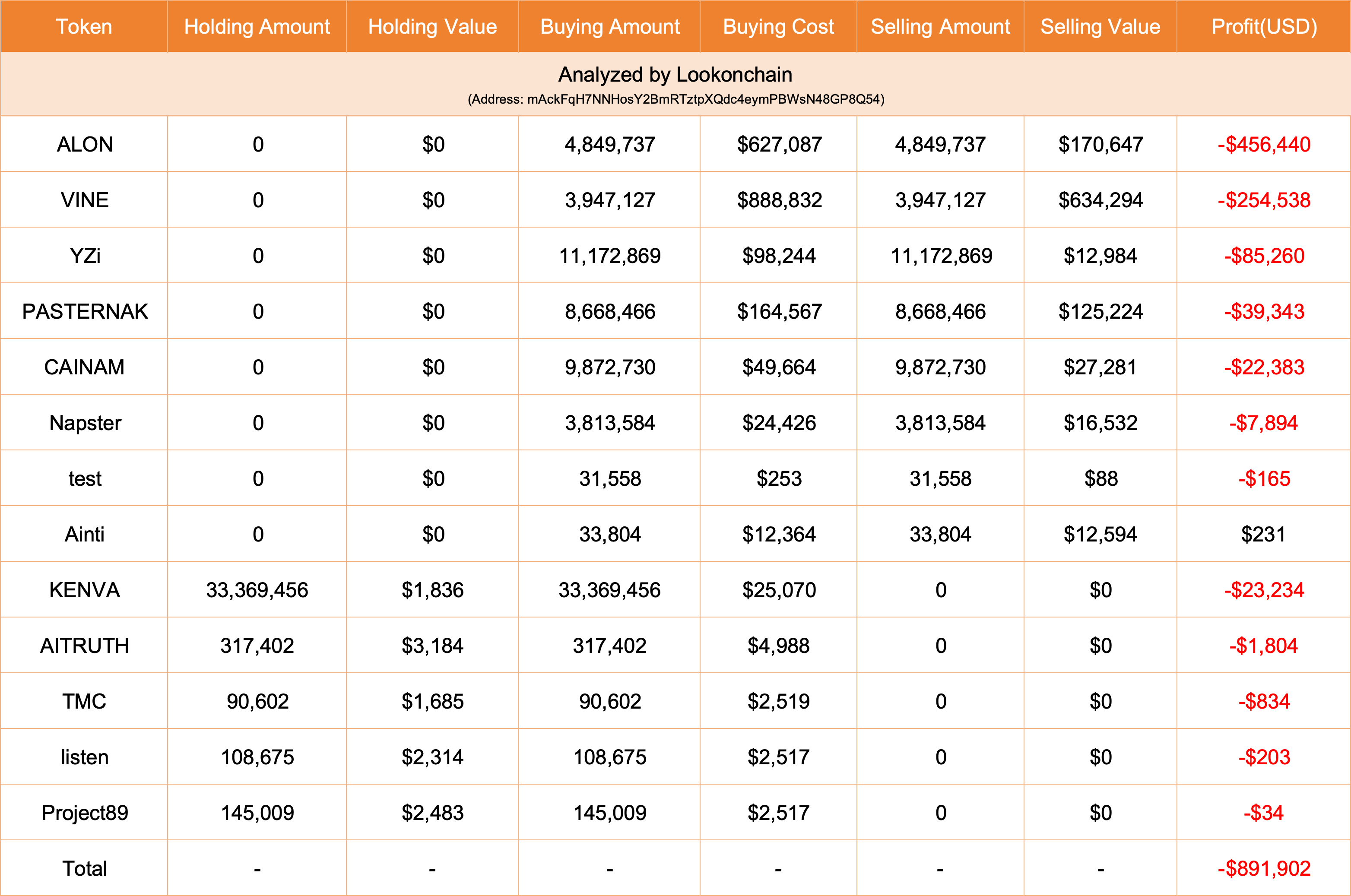 Başarısız balina ALON’da 456.4 bin dolar, VINE’da ise 254.5 bin dolar kaybetti.”