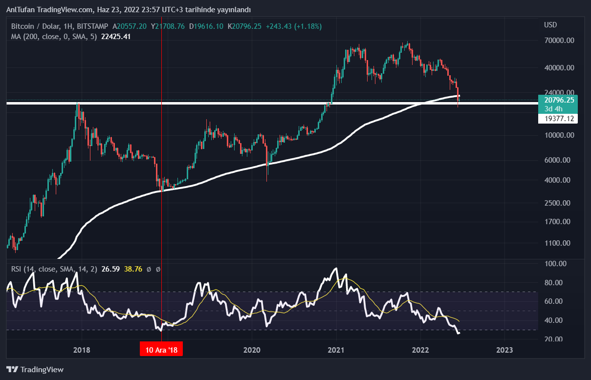 Daha önceki ayı sezonlarında 200 haftalık hareketli ortalamadan yeni bir boğa sezonu başlatan Bitcoin, halen böyle bir hamle gerçekleştiremediği görülüyor.