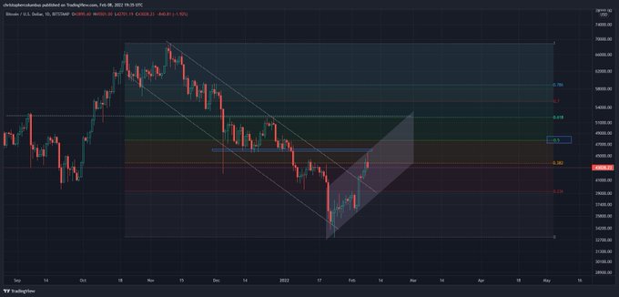 Dave the Wave takma adlı kripto para analisti 94.000 Twitter takipçisine Bitcoin ile ilgili analizlerini paylaştı. Analiste göre BTC, şuan 33.000 dolar bandından 30 günlük en yüksek seviyesi olan 45.821 dolar seviyesine giden yükselen bir kanal içerisinde hareket ediyor. Wave’ye göre Bitcoin yükselen kanalda tutunabilmesi için tekrar 40.000 dolar üzerine çıkması gerekiyor.