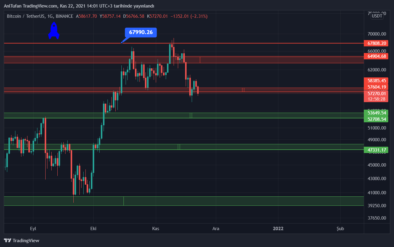 Bitcoin haftalık kapanışını 59.000 dolar desteğinin altında yaptı. Haftalık grafikte önemli bir destek seviyesi olan 59.000 dolar kırıldıktan sonra makas biraz açık gibi gözüküyor. Gelin Bitcoin’in yapması muhtemel olduğu hareketlere beraber göz atalım:
