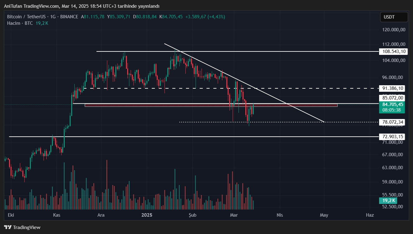 Önümüzdeki süreçte Bitcoin’deki yükselişlerin birazda daha alevlenmesi için BTC’nin 85 bin doların üzerinde kalıcı olması gerekiyor. Bu senaryoda Bitcoin’in düşen trendini ve 91 bin dolar direncini test etmesi beklenebilir.