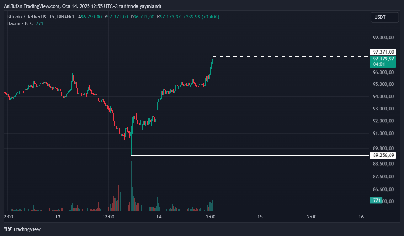 Kripto para sektöründe bugün itibariyle yükselişlerin meydana geldiği görülüyor. Dün özelinde 89.256 dolar seviyelerine kadar gerileyen lider kripto para birimi Bitcoin (BTC), bu yaşanan sert düşüşlerin ardından toparlanmaya başladı ve tekrar 97 bin dolara ulaştı.