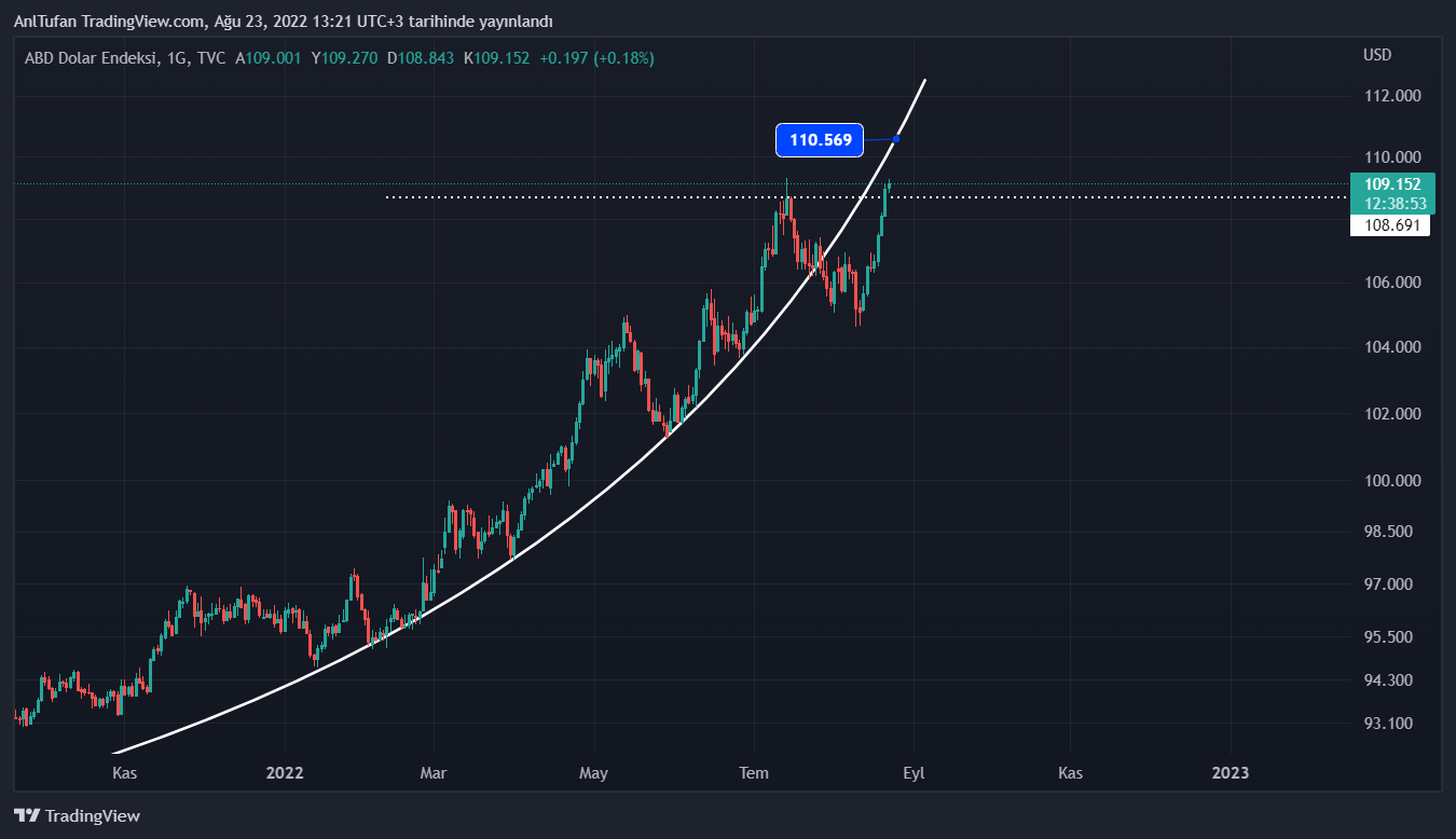 Bu kapanışın ardından 2’li tepe formasyonu oluşturmayacak olan DXY, parabolik yükselen trendin retest bölgesi olan 110 dolar seviyelerine kadar yükseliş yaşaması beklenebilir.