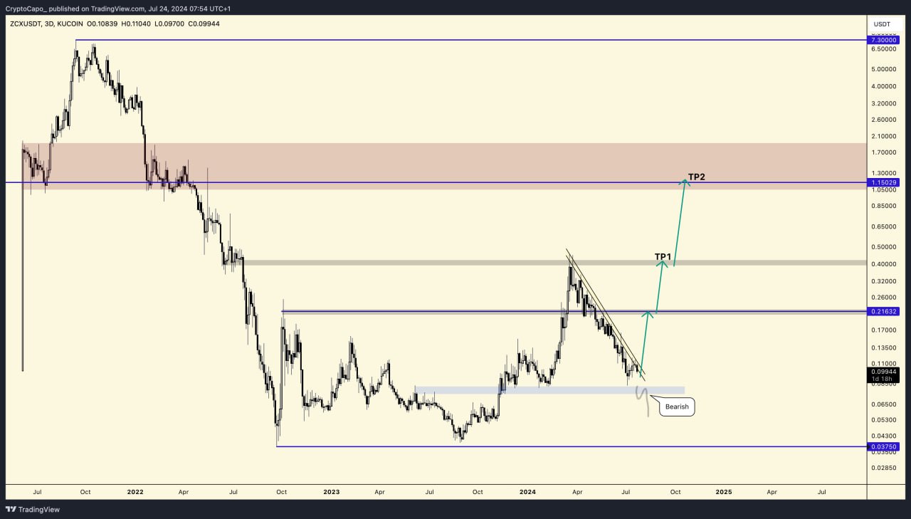 Crypto Capo önümüzdeki süreçte ZCX isimli bir altcoin‘in dev bir ralli yaşayacağını düşünüyor. Capo’nun grafiğini incelediğimizde, ZCX’in 10 kattan fazla değer kazandığı görülüyor.