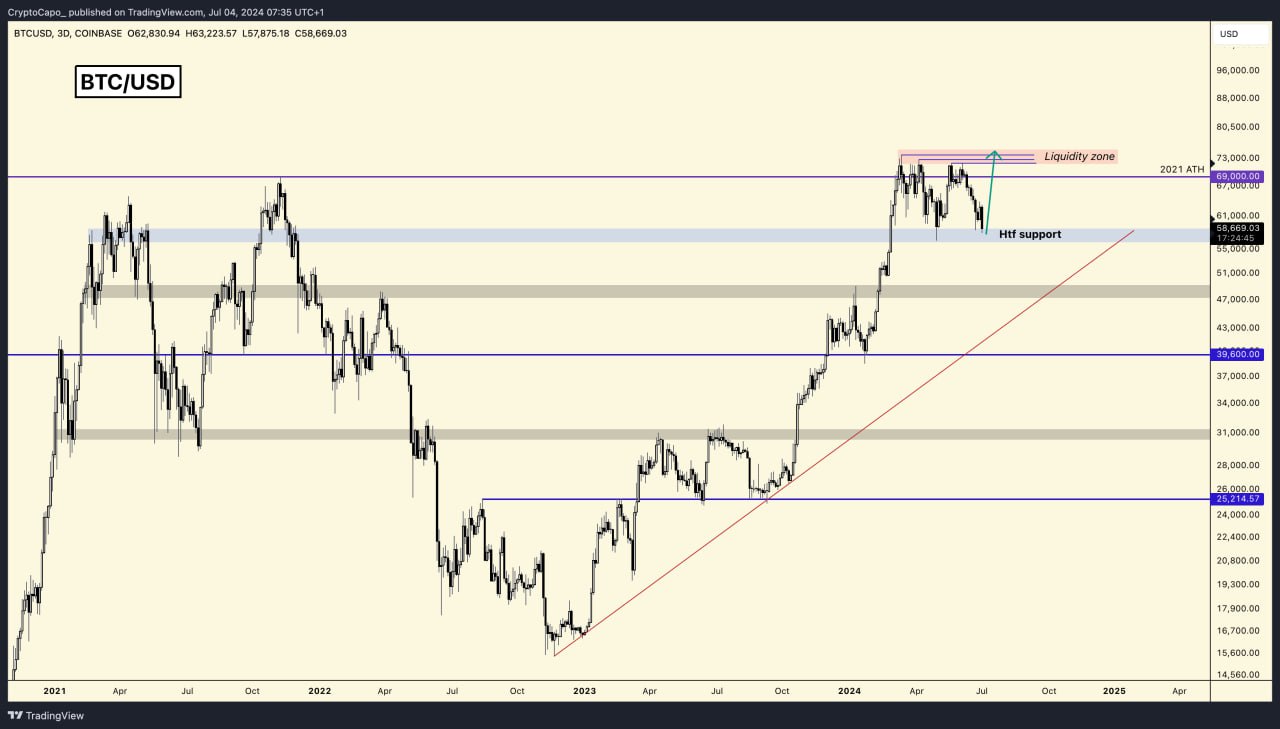 “Şu anda Bitcoin’de (BTC) ana zaman diliminde önemli bir destek noktasındayız (58 bin – 60 bin dolar).