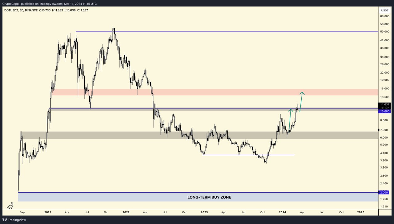 Crypto Capo önümüzdeki süreçte Polkadot (DOT) ve Bitcoin Cash‘in (BCH) değer kazanmaya devam edeceğini düşünüyor. İşte Capo’nun DOT hakkında söyledikleri: