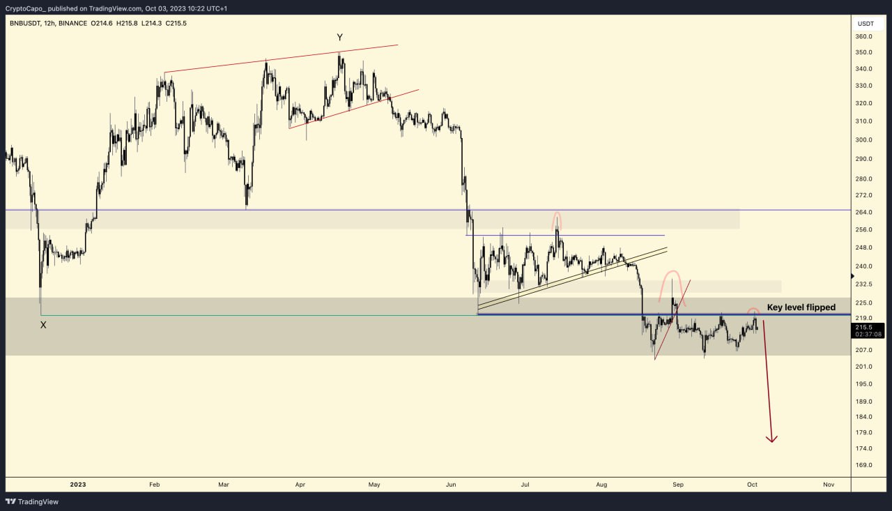 İşte Crypto Capo’nun Binance coin (BNB) hakkında paylaştığı son analiz: