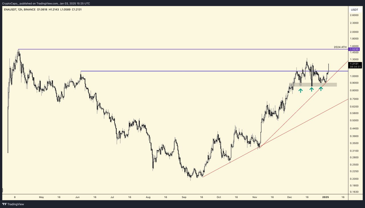 ENA’daki son yükselişleri inceleyen Capo, popüler altcoin’in üçlü dip formasyonu oluşturduğunu düşünüyor. İşte Capo’nun ENA hakkında paylaştığı son sözler: