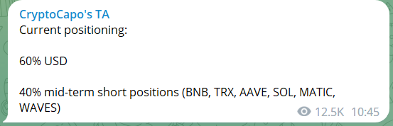Crypto Capo Telegram grubu üzerinden takipçilerini bilgilendirmeye devam ediyor. Capo bu sabah Telegram hesabı üzerinden şu gönderiyi paylaştı: