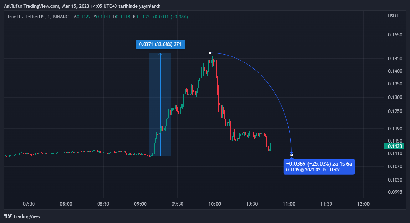 Bu duyurunun ardından sonra ise TrueFi’nin çok sert bir şekilde değer kazandığı görüldü. Kısa bir süre içerisinde yüzde 30’dan fazla değer kazanan TRU, Binance CEO’su CZ’nin söylemleri ile birlikte çöküş yaşadı.