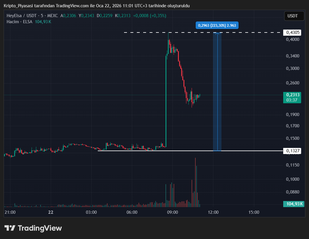 Bu son gelişme neticesinde ELSA fiyatında ani bir yükseliş yaşandı. Başarılı altcoin dakikalar içerisinde %200’den fazla yükseliş yaşayarak değerini üçe katlamayı başardı.