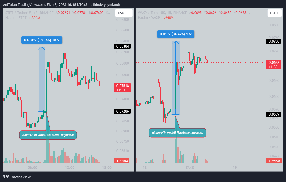 Binance’in vadeli listelemesi sonrasında STPT ve WAXP’de sert hareketler meydana gelebilir.