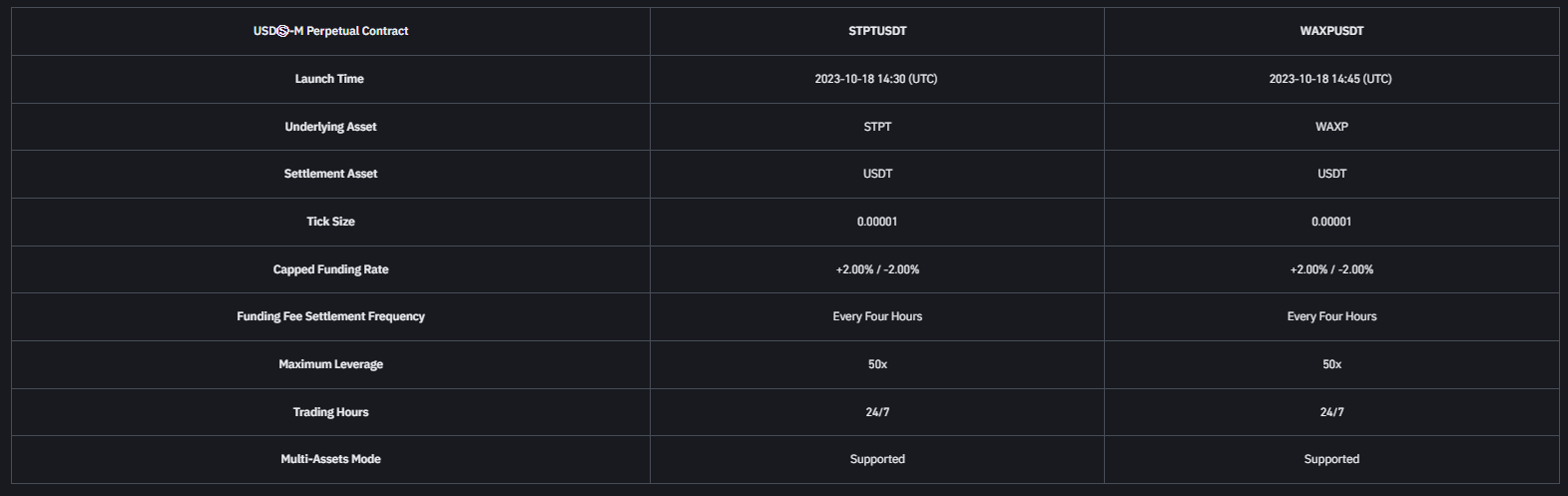 STPT ve WAXP önümüzdeki dakikalarda Binance vadelide listelenecek. İşte popüler borsanın konu ile ilgili paylaştığı duyuru metni:
