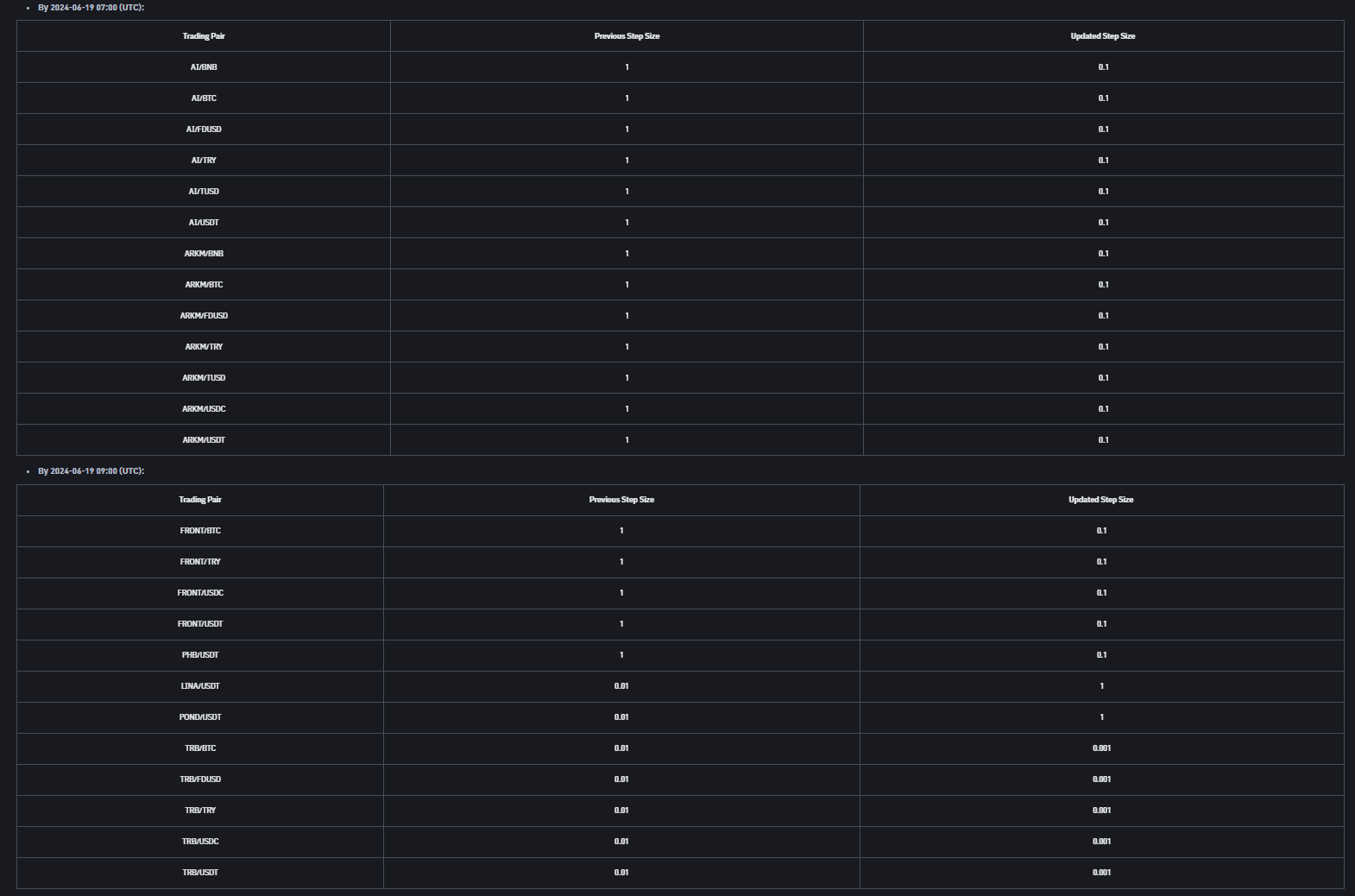 Örnek olarak kullanıcılar daha önce AI/USDT paritesinde 1 dolarlık alım yapabiliyordu. Son güncelleme ile 0.1 dolarlık alımlarda yapılabilecek.