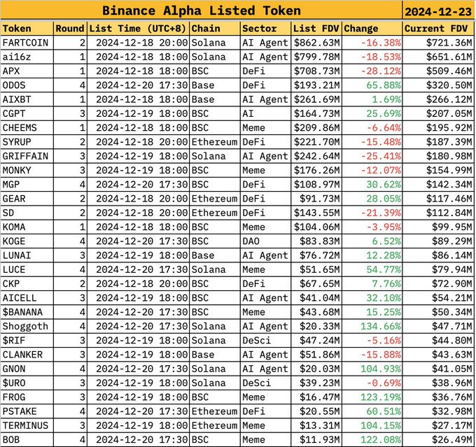 Çin merkezli bir kripto gazetesi olan Wu Blockchain bu yukarıdaki ürünlerin bazılarının Binance Alpha’ya eklenmesiyle birlikte ciddi sıçramalar yaptığını tespit etti.