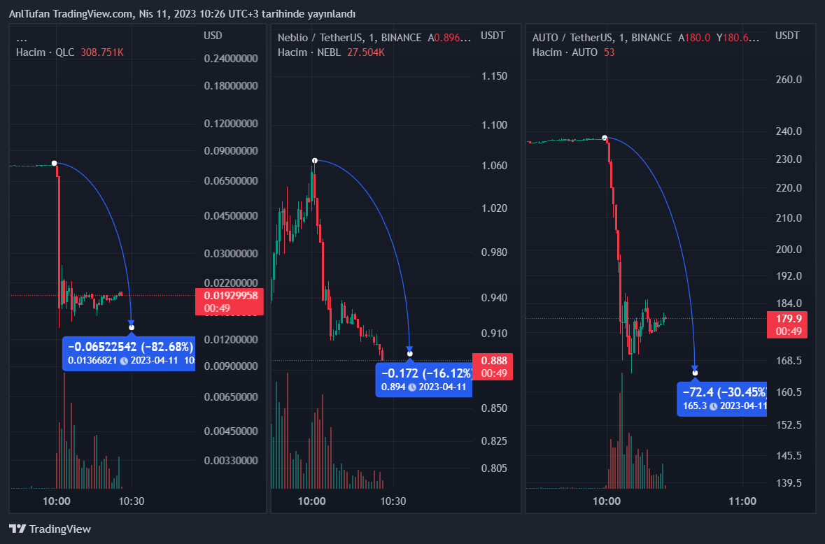 QLC, NEBL ve AUTO isimli 3 adet altcoin’i platformundan kaldıracağını açıklayan Binance, resmen bu ürünlerin çöküş yaşamasına neden oldu: