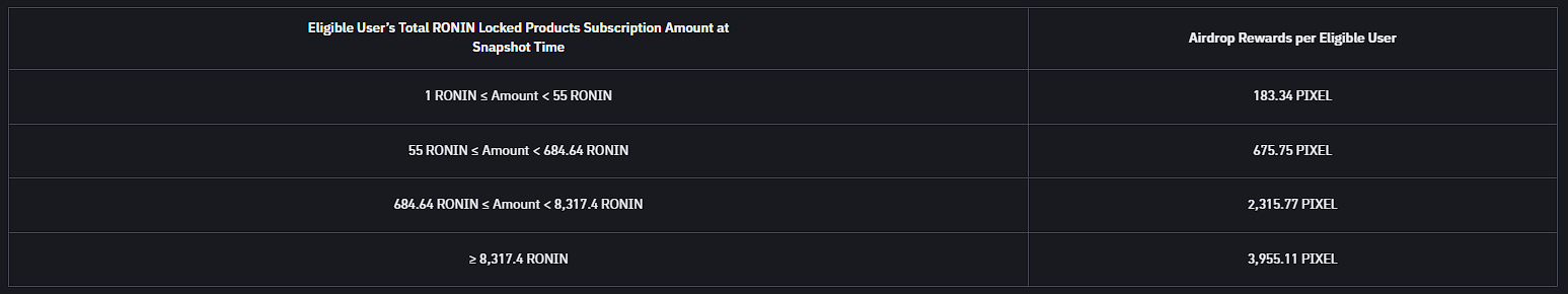 Bu kampanya için stake edilecek RONIN ve karşılığında verilecek PIXEL miktarını merak eden okurlarımız, ilgili görseli inceleyebilir.
