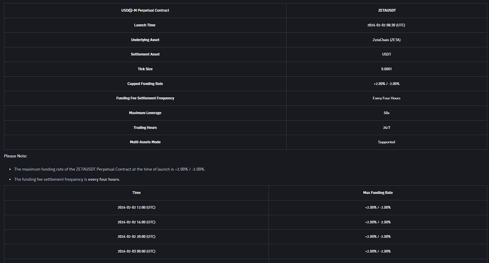 Popüler borsa Binance ZETA’yı spot piyasada listelemese de, vadeli piyasaya eklemeye karar verdi. İşte Binance’in konu ile ilgili paylaştığı duyuru metni: