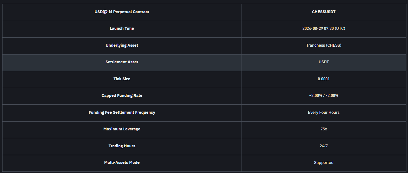 Popüler kripto para borsası Binance, CHESS vadeli listeleme duyurusunda başlıca şu bilgileri aktardı: